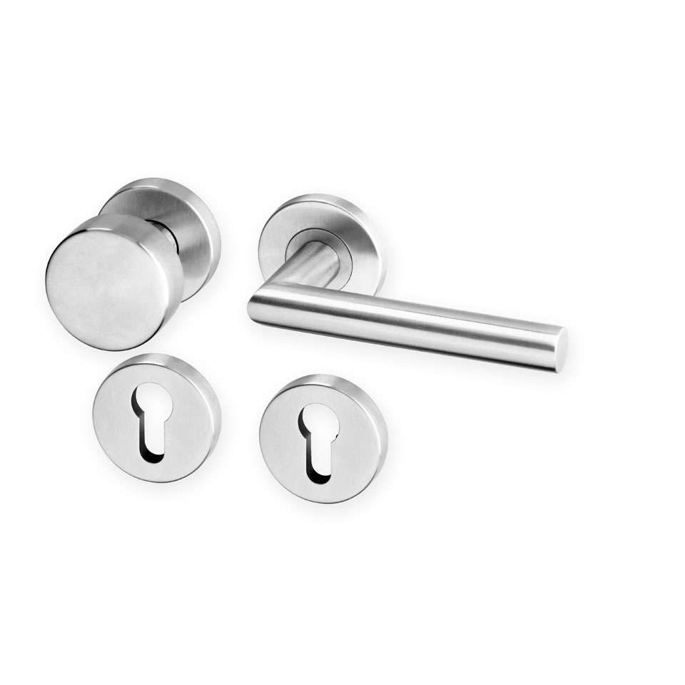 Nerezové kování s tichou ložiskovou rozetou. Další varianty BB, PZ, WC najdete v detailu.