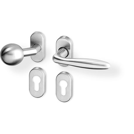 Nerezové kování s kvalitní povrchovou úpravou vhodné pro středně zátěžové prostory, například kanceláře, reprezentativní místnosti, prostory s běžným pohybem veřejnosti, byty, domácnosti. Materiál: nerez AISI 304.