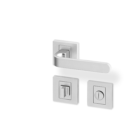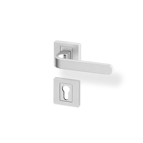 Nový model interiérového kování se zajímavě řešeným tvarem kliky na hranaté rozetě ve více variantách povrchové úpravy. Robustní litá konstrukce rozety s trny proti pootočení. Povrch: efekt nerez