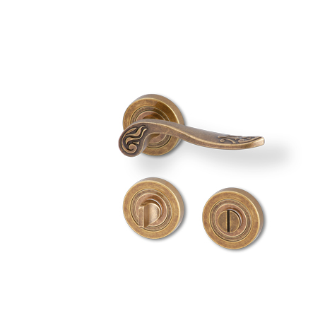 Rustikální kování s povrchovou patinou doplněné ornamentálním filigránem. Materiál: bronz matná patina.