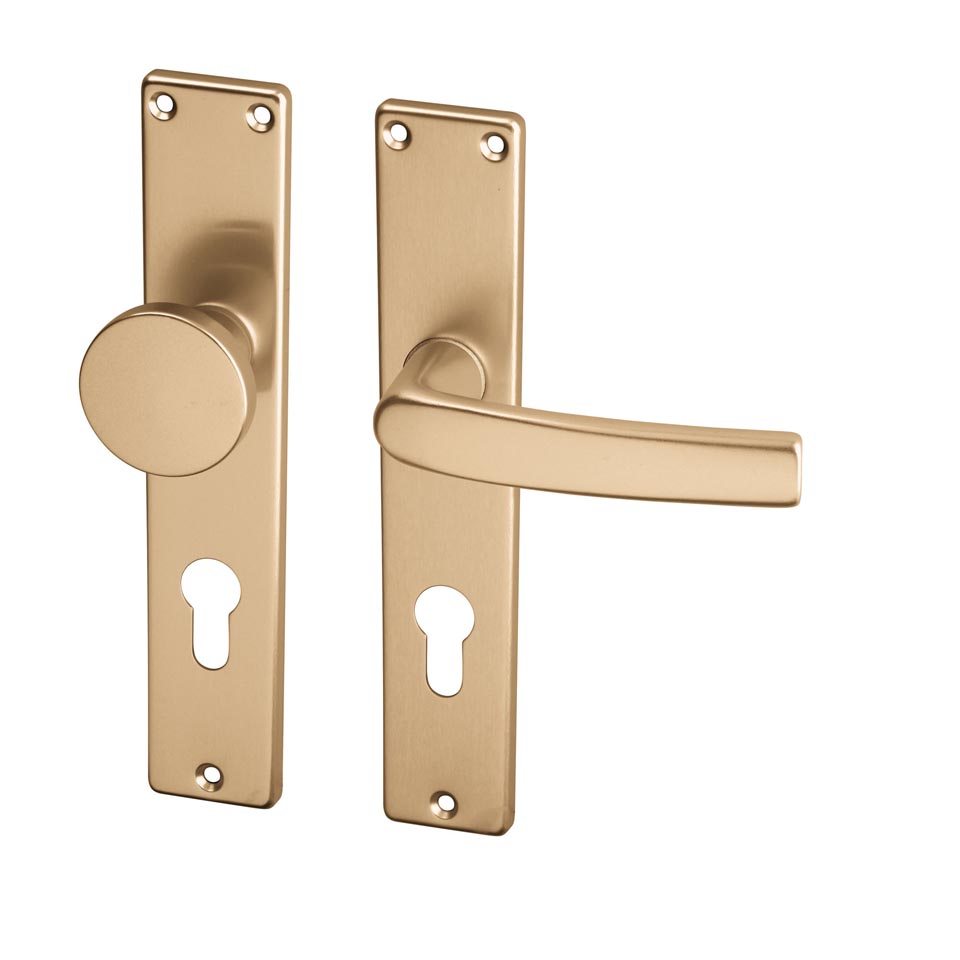 Rozetové hliníkové kování s eloxovaným povrchem. Další varianty kování BB, PZ a WC najdete v detailu.