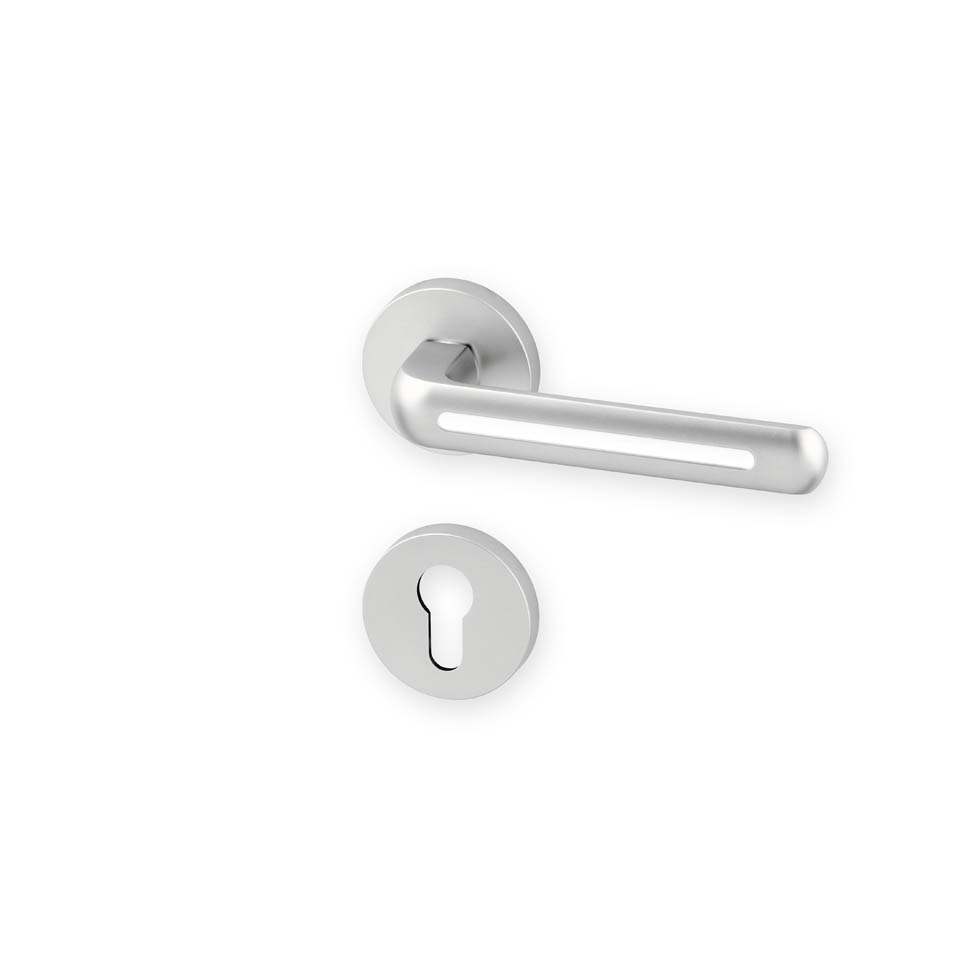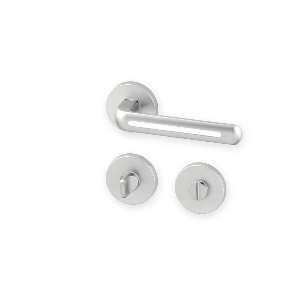 Vybírat můžete ze dvou povrchových úprav, dvou barev linky a dvou tvarů rozet. Díky kovové konstrukci je kování vhodné i do interiérů se střední zátěží, jako jsou např. kanceláře.