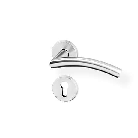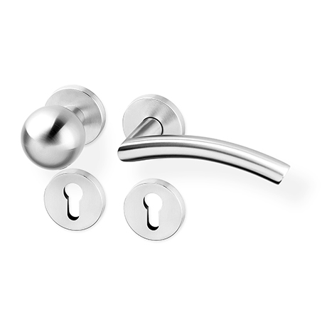Nerezové kování s novou technologií ložiskových rozet. Vhodné pro zátěžové prostory se zvýšeným pohybem veřejnosti, jako jsou veřejné toalety, správní budovy, stadiony. Pro svůj tichý chod jsou vhodné i pro byty, domácnosti a kanceláře. Materiál: nerez AISI 304.