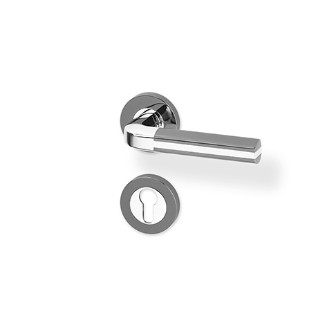 Nový design interiérového kování s robustním tělem kliky, zaoblenými hranami a kombinovaným povrchem do moderních interiérů. Robustní litá konstrukce rozety s trny proti pootočení. Povrch: chrom/nikl.