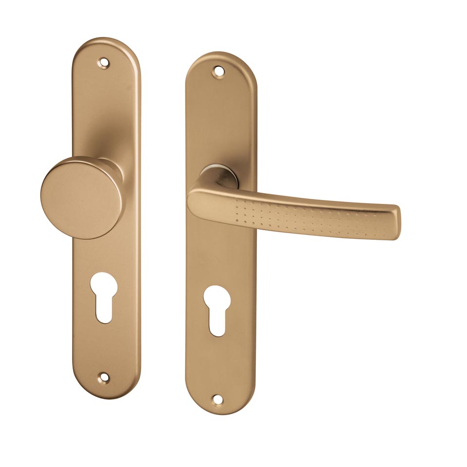 Rozetové hliníkové kování s eloxovaným povrchem. Další varianty kování BB, PZ a WC najdete v detailu.