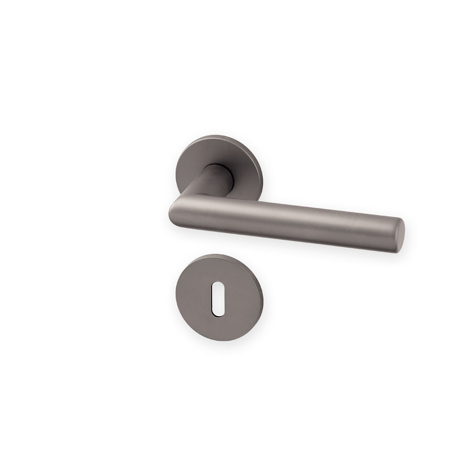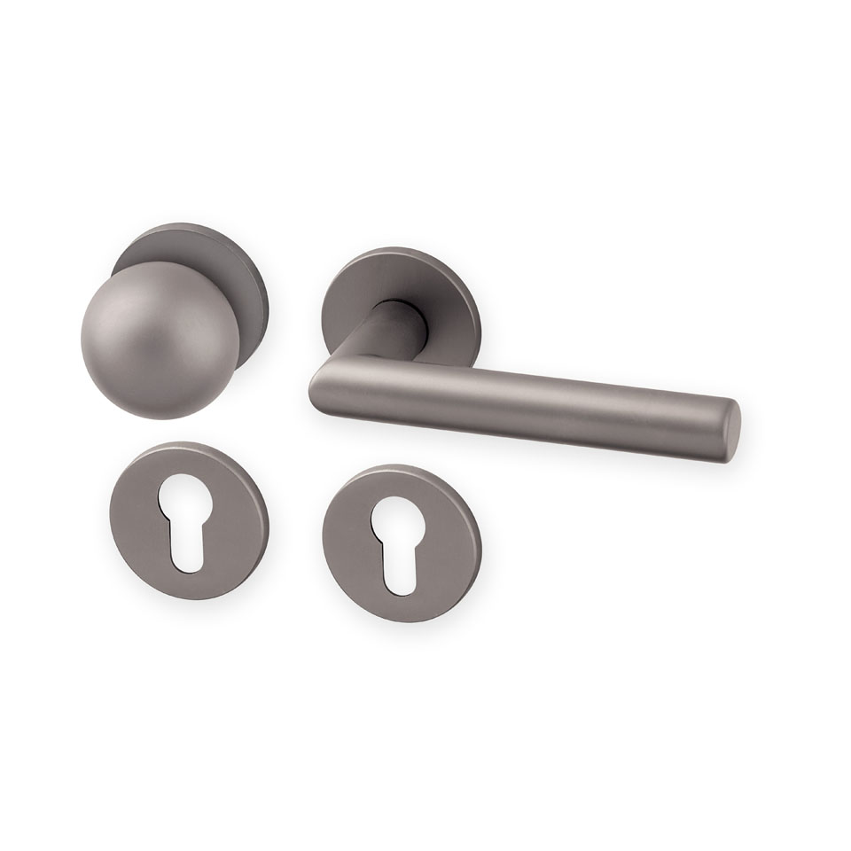 Nadčasové dveřní kování s výjimečnou povrchovou úpravou titan. Klika Tipa se hodí do každého interieru a pohodlně se drží v ruce. Moderní kulaté nízkoprofilové rozety.