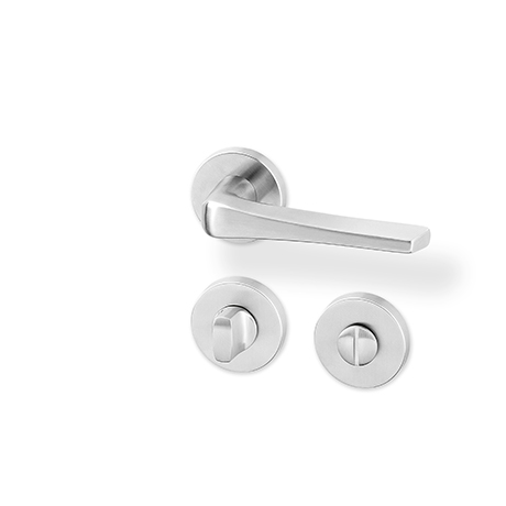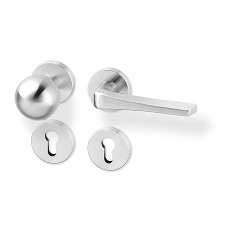 Nerezové kování s novou technologií ložiskových rozet. Vhodné pro zátěžové prostory se zvýšeným pohybem veřejnosti, jako jsou veřejné toalety, správní budovy, stadiony. Pro svůj tichý chod jsou vhodné i pro byty, domácnosti a kanceláře. Materiál: nerez AISI 304.