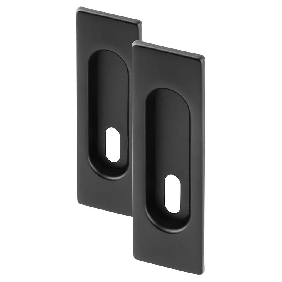 Kvalitní úchyty z kovu pro montáž a ovládání posuvných interiérových dveří. Moderní design hranatých mušlí s povrchovou úpravou černý lak, snadná montáž a široká škála provedení zajistí vašim dveřím příjemné ovládání a elegantní vzhled.