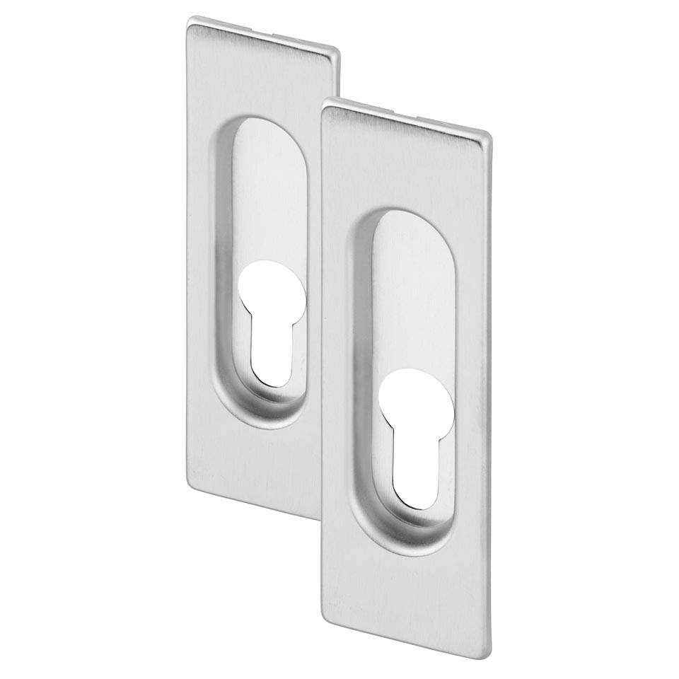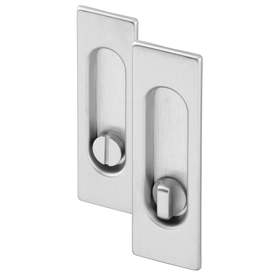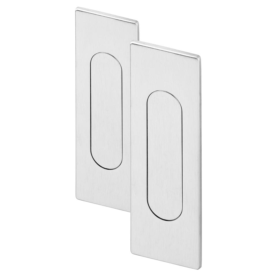 Kvalitní úchyty z kovu pro montáž a ovládání posuvných interiérových dveří. Moderní design hranatých mušlí s povrchovou úpravou matný chrom, snadná montáž a široká škála provedení zajistí vašim dveřím příjemné ovládání a elegantní vzhled.