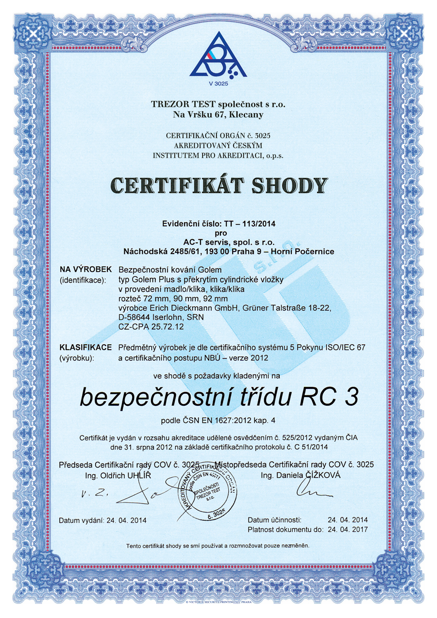 Certifikát výrobku je odborné nezávislé ověření výrobku o tom, že splňuje veškeré bezpečnostní parametry,
