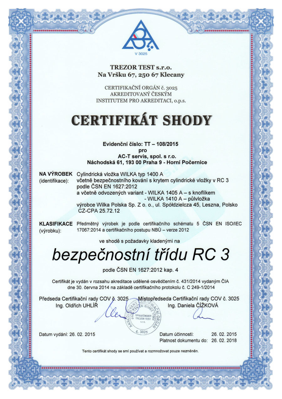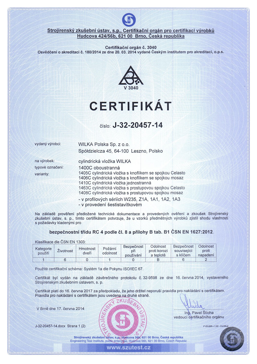 Na základě úspěšných certifikačních zkoušek je výrobek opatřen osvědčením, tzv. certifikátem,