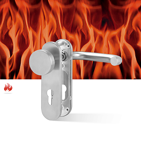 Kování pro dveře s požadavky na protipožární ochranu dle DIN 18273. 9 mm čtyřhran, tělo z ocelového jádra. Materiál: nerez (Klika Una)