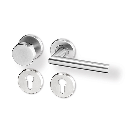 Kování pro dveře s požadavky na protipožární ochranu dle ČSN. 9mm čtyřhran, tělo z ocelového jádra. Materiál: nerez třídy AISI 304.